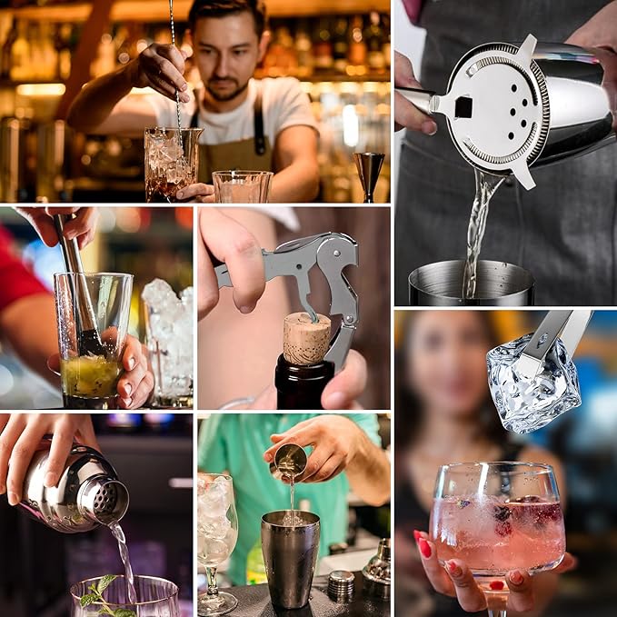 - [Gift Package]:This cocktail shaker set as a thoughtful gift for special occasions such as wedding, birthday, housewarming, Thanksgiving, Christmas, Valentine's day, customers and business partners. The exquisite packaging can prove your taste. I believe they will like your gift!