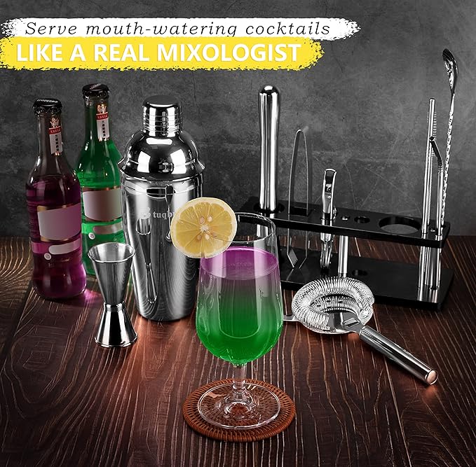 - [Service Guarantee]: 100% customer satisfaction is our purpose - at the same time, we believe you will fall in love with this cocktail shaker set. If you are not satisfied for some reason, please contact our customer service to ensure that the problem can be solved within 24 hours, and you will be refunded in full immediately.
