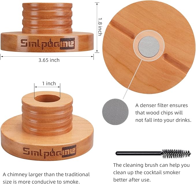 - 【Easy to use】 The smoker is made of natural cherry wood, and the improved design of the enlarged chimney can fill your glass with thick smoke within 10 seconds and give off a strong flavor. And we also included an instruction manual and graphic explanation, even if you are a beginner, as long as you have it, you can easily become a professional bartender.