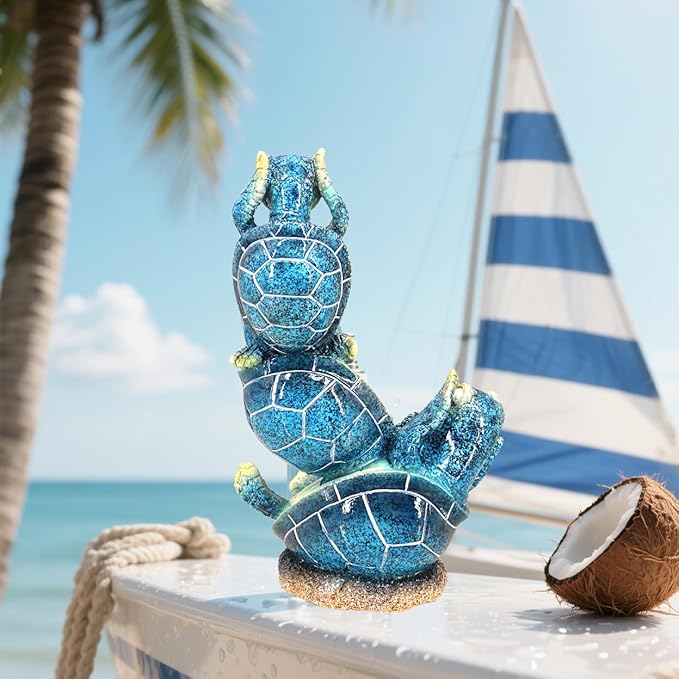 Resin Sea Turtle Statue - Baby Turtle Figurine for Home Decor, Feng Shui Wealth Lucky Charm, Cute Blue Ocean Decor, 9-Inch Tabletop Decoration Gift