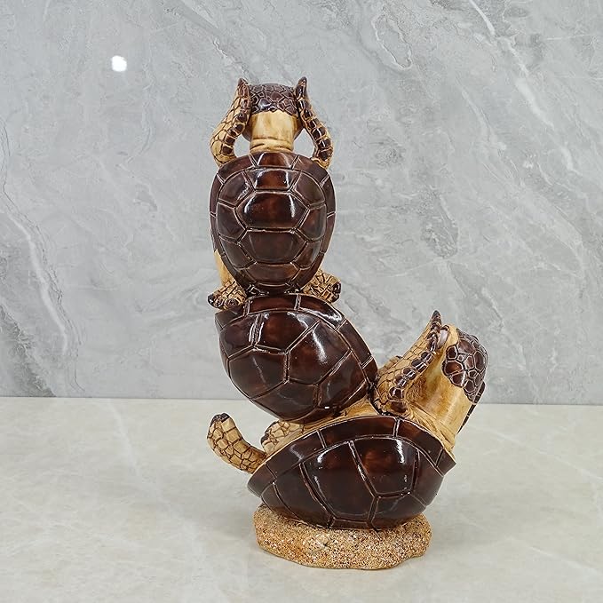 Decorative Resin Sea Turtle Statue. Lovely Baby Seaturtle Figurine. Wild sea Life Blue Sea Turtle Table Décor. and Gift, Lucky Wealth Feng Shui Seaturtle Figurine (Brown3)