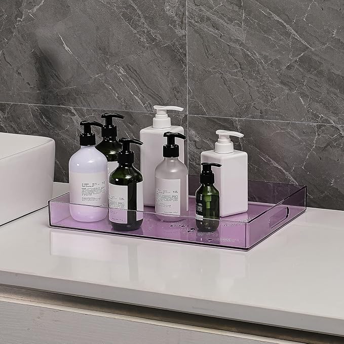 Sooyee Violet Clear Acrylic Serving Tray with Handles,16" x 12" Decorative Tray for Breakfast, Tea, Food, Butler,Coffee,Table Ottoman Vanity Countertop