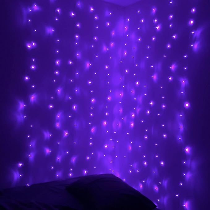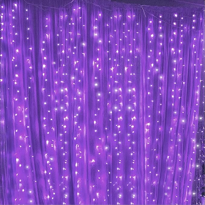 Dazzle Bright Curtain String Lights, 300 LED 9.8ft x 9.8ft 8 Lighting Modes Fairy Lights USB Powered, Waterproof Lights for Halloween Christmas Party Wedding Outdoor Indoor Wall Decorations (Purple)