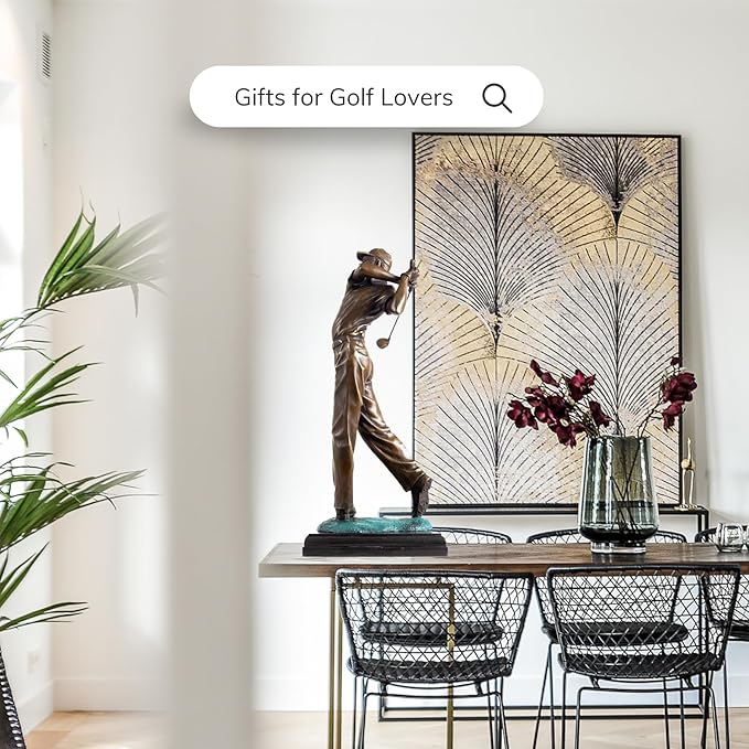 22.8'' Golf Man Bronze Statue, Classical Golfer Bronze Figurine Sculpture with Marble Base Modern Art Crafts for Home Office Decor Gift