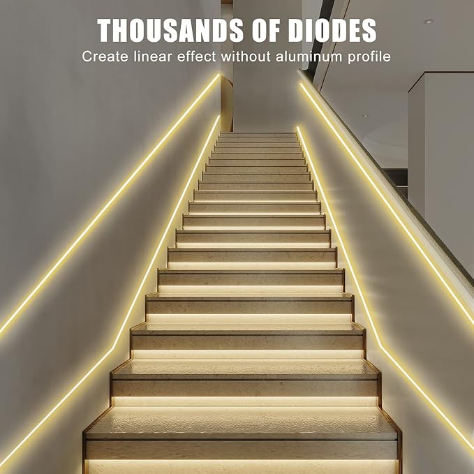 - Dimmable: The COB rope light adjust 10-100% brightness makes room more Inviting