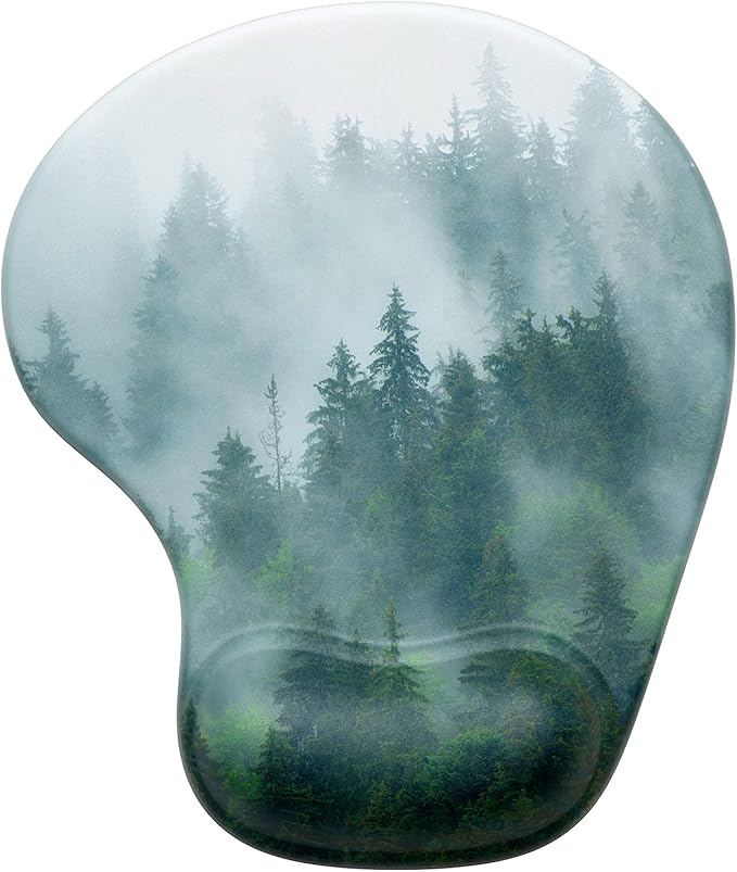 Hsurbtra Ergonomic Mouse Pad with Wrist Rest Support, Gel Mouse Pads with Non-Slip PU Base, Pain Relief Memory Foam Computer Mat, Cute Office Supplies Desk Decro Accessories, Black Forest