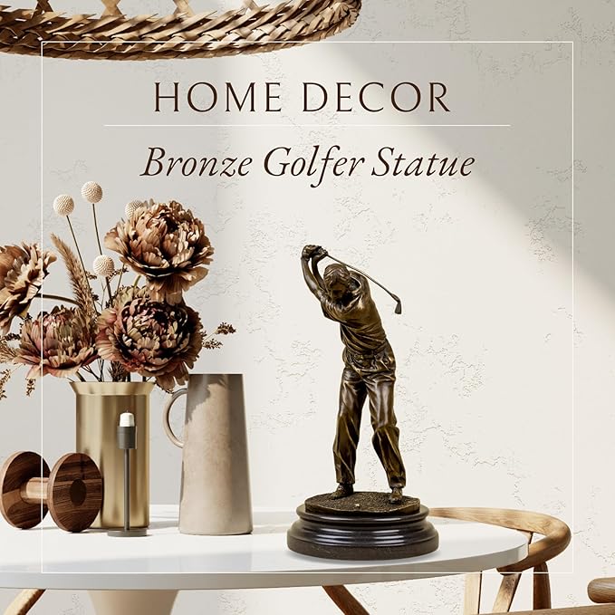 12.6'' Golf Man Bronze Statue, Classical Golfer Bronze Figurine Sculpture Ornament with Marble Base Modern Art Crafts for Home Office Decor Gift