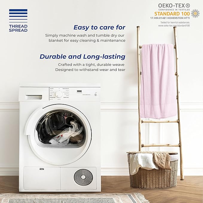 - Lasts a Long Time - Anti-Pilling, Fading, & Shrinkage Fabric: Our luxury cotton blanket king size are tightly woven with a closed-cell construction to extend its service life, reducing shrinkage, pilling, and fading on the wash. This All Season cotton blanket is machine washable, stain and shrink-resistant, and washes as good as new every single time. Don’t use bleach or fabric softeners. To minimize shrinkage, tumble dry on low heat.
