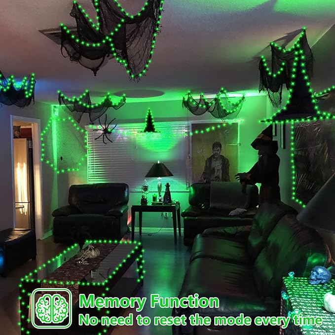 YEGUO 165ft 500 LED Halloween Lights Outdoor Waterproof, 8 Modes Green String Lights Plug in, Green Wire Christmas Lights Indoor with Timer Memory