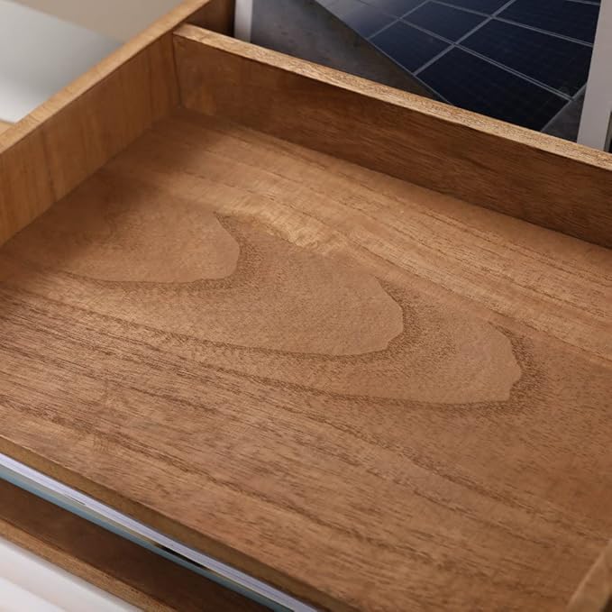 - [SELECTED REAL WOOD] This desk organizer with 3 horizonal trays and 1 vertical upright sections is made of selected solid wood with clear texture and perfect for documents organizer and file folder organizer at any workplace.Cute classical dovetail joint design of this file organizer make itself stable and strong bearing.