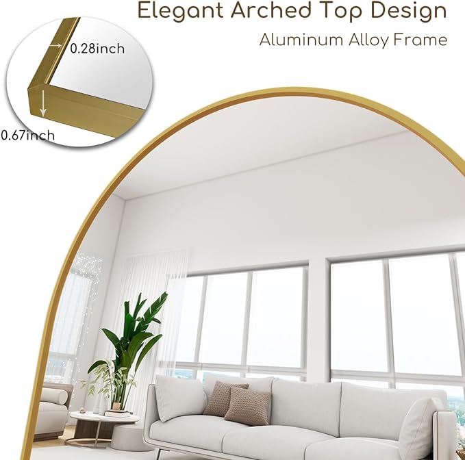 - 【MIRROR SIZE】Measuring [65"x21"] arched full length mirror, This large floor mirror provides a full view of your ourfit and body, you will love how it open up your space,let light bounce around and makes you feel confident
