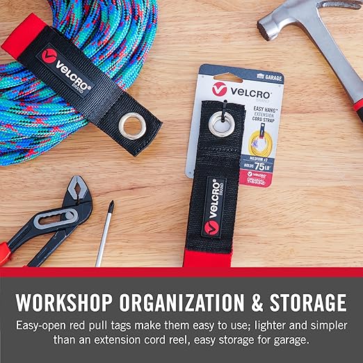 - GARAGE ORGANIZERS AND STORAGE: Keep power cables, hoses and more tidy, hang tools from peg hooks for easy access, these straps are the perfect shop organization and storage tool