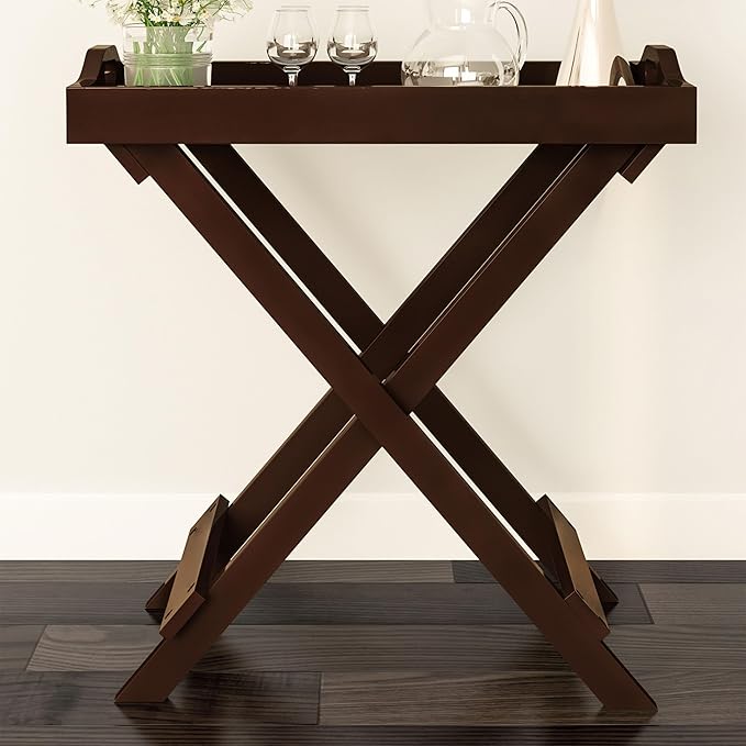 - PRODUCT DETAILS - Materials: Manufactured Wood. Dimensions: (L) 22" x (W) 12.5" x (H) 23"; Tray Top: (L) 21.62" x (W) 13.75" x (H) 3"; Folded: (L) 12.5" x (W) 30" x (H) 2.5". Weight Capacity: 22lbs. Color: Brown.
