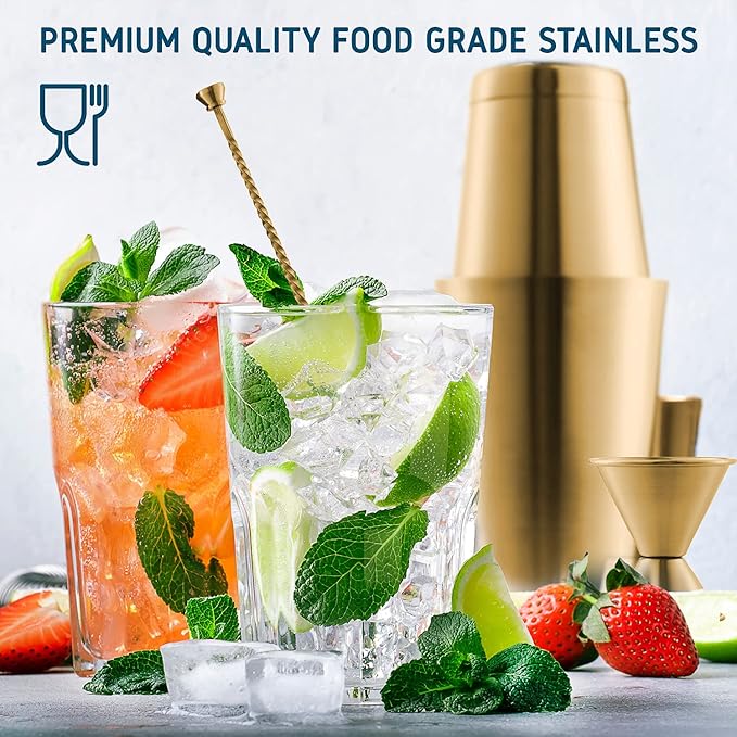 - Professional Bartender Set: Our shaker set, bartender kit is made from commercial-grade stainless steel. Rustproof and dishwasher safe, this drink mixing set is built to last.