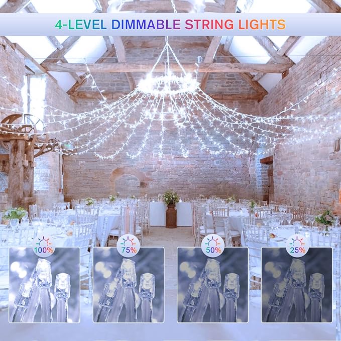 - 【Regulable Lighting & Timer】 This christmas lights indoor have 100%-75%-50%-25% 4 level brightness and three different timer selection 6H(6H on, 18H off), 8H(8H on, 16H off), 6639H(6H on, 6H off, 3H on, 9H off). And the built-in memory chip will save your last mode setting, so there is no need to reset!