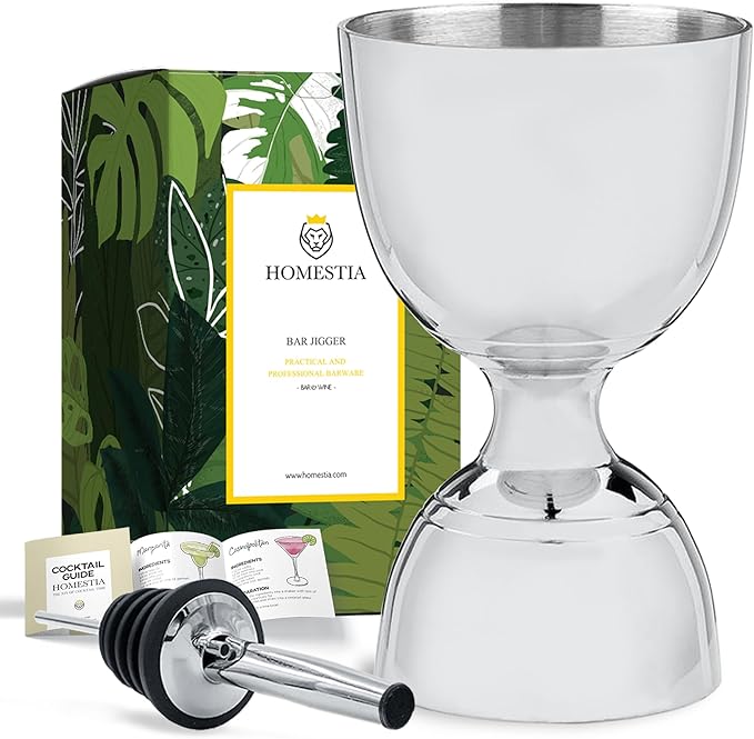 Homestia Premium Bell Jigger, with Measurements Inside 2 oz 1 oz, Shot Measure Double Jigger, Bar Jigger Liquor Alcohol Measuring for Bartending, Stainless Steel Bartender Jiggers with Pourer