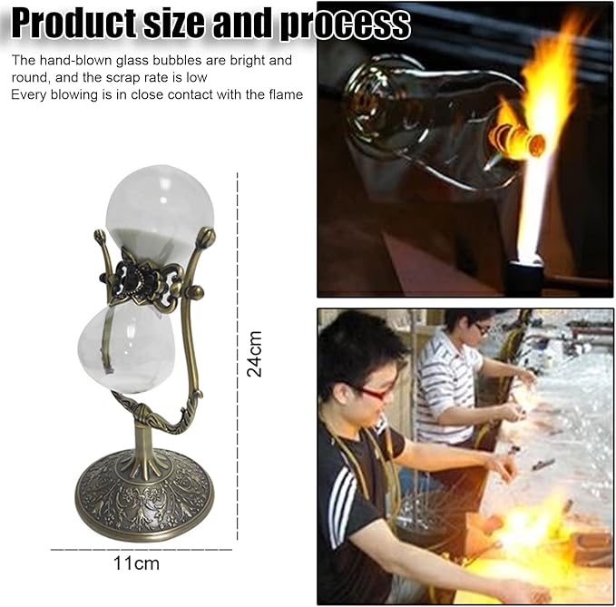 - [Pure hand blown] The gravity hourglass is carefully designed. Its sand container is blown by hand. At the same time, we have increased the thickness and brightness of the glass, making it more transparent, uniform and soft, and looks more crystal clear.