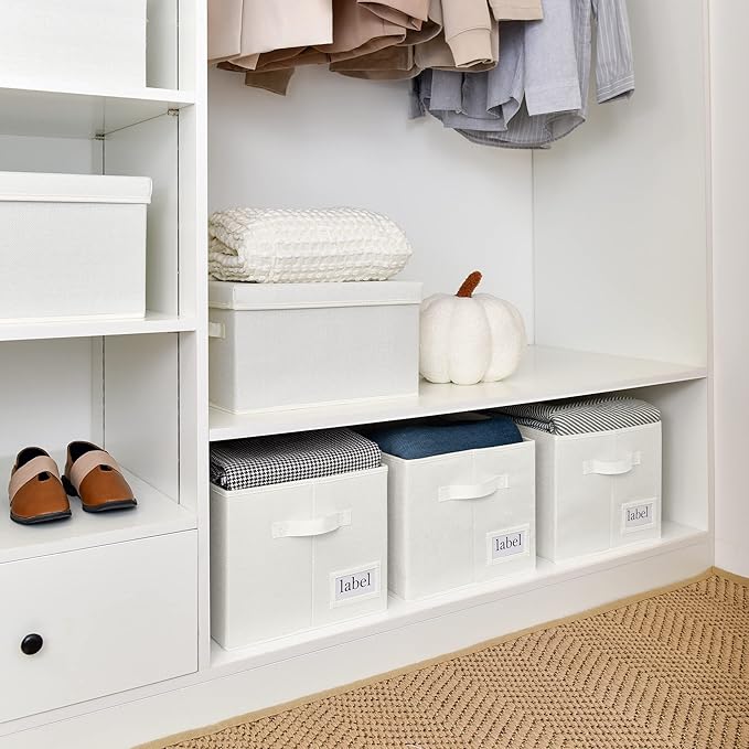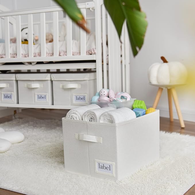 - Practical Design - The decorative storage box comes with 2 handles and is easy to pull or lift, perfect for organizing cabinets, walk-in closets, bookcases and more. Each box also comes with a label for easy identification of the contents. The storage bin is easy to clean, just dust with a soft, dry cloth.