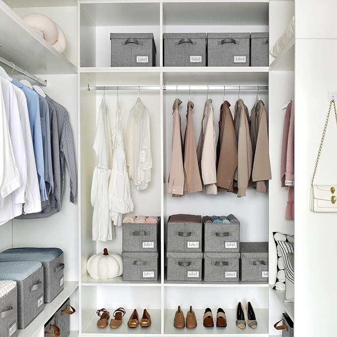- Stackable and Foldable: The covered storage box is made of heavy-duty thick cardboard around the edges, with a thick base and lid, allowing you to maximize your storage space when stacked. When not in use, these storage boxes easily fold flat to save space.