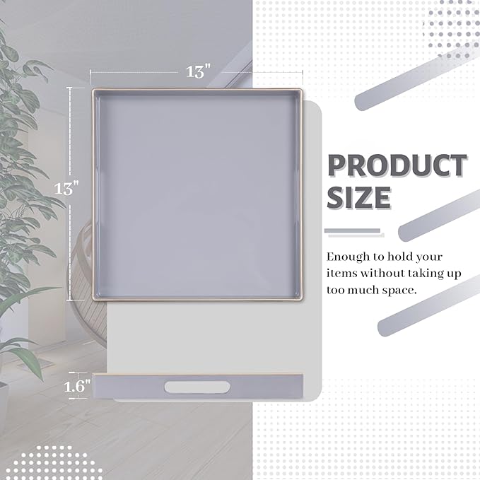 - STORAGE: The size of the square plastic tray is 13" x 13" x 1.57", which is perfect for placing the remote control, magazines, sunglasses, wallets, etc. to keep things organized and easy to retrieve. This is an ideal service tray for ottoman, coffee table, dining table, dressing table, etc.
