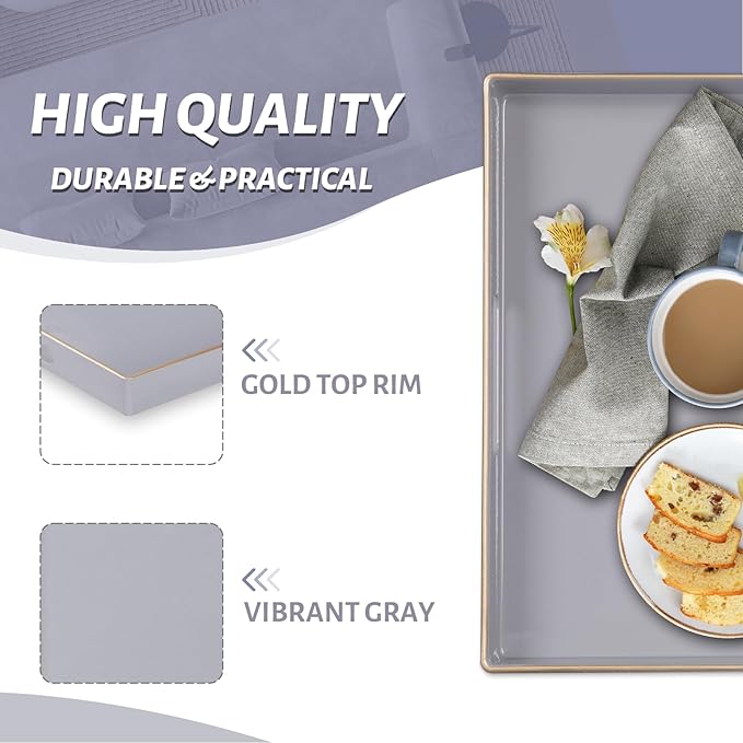 - MULTI-PURPOSE: This multifunctional tray perfectly combines style and function, which can provides services and decorations for the living room, bedroom, bathroom, dining room or entrance, ect. In addition to daily use, this decorative plastic tray is also a reliable helper for birthdays, parties, weddings and other special occasions.