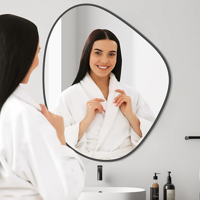 - The irregular wall mirror is look like a art, to make the room of the house look more interesting. This asymmetrical abstract irregular-shaped mirror perfectly fits wall decor and artistic display for the living room, bedroom, bathroom, or hallway and entry wall.