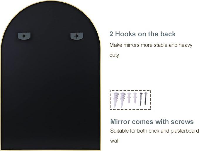 - WIDELY APPLICATION: This Arched Wall Mirror can be used as a vanity mirror on a makeup table or in the bathroom. It can also be hung as a decorative mirror in the entrance hall, living room or bedroom.