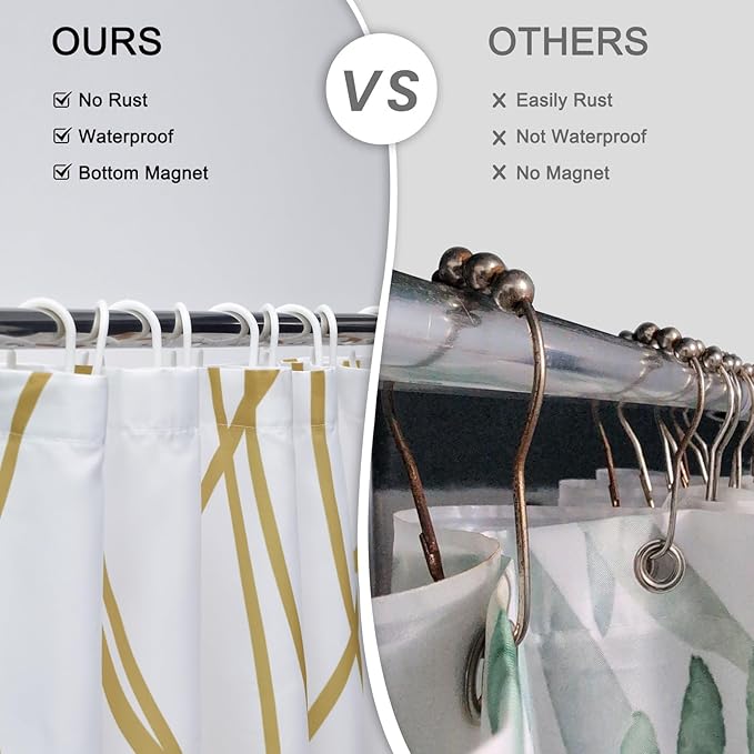 - EASY TO INSTALL -- This shower curtain set includes hooks for easy installation. The bottom of the shower curtain is designed with a 20g weighted hem, making it less likely to be lifted by the wind.