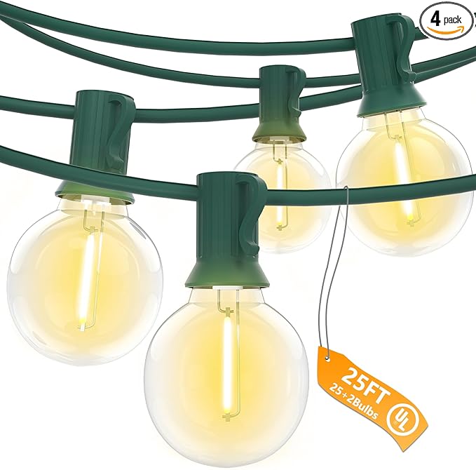 - Connectable Round String Lights: The G40 LED Christmas patio lights is designed with end-to-end connections, you can connect 28 strands at most to cover a large area. green wire string lights can withstand extreme temperatures, rain, wind or wet weather. Unlike traditional ropes, globe Christmas lights outdoor are more durable and can be used indoors and outdoors in all seasons for many years