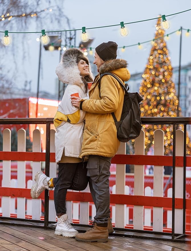- Practical & Easy to Install: This outdoor christmas lights is very easy to install with a cable tie or cup hook, fix it or place it anywhere as you need. The classic christmas lights is very flexible and practical, a light bulb that goes out does not affect other lighting bulbs, Safe and durable electric string light either with an E12 socket base and a built-in spare fuse for easy replacement