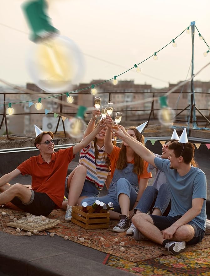 - Decorative Globe String Lights: This G40 Retro Christmas Lights can send warm white light when you install it in the garden, tents, courtyard, making your mood very happy. Outdoor globe lights are the perfect decoration for bedroom, living room and outside space like rooftops, deck, tent, porch, pergola, market, umbrella, balcony. Add relaxed and romantic ambience to your party, camping, wedding