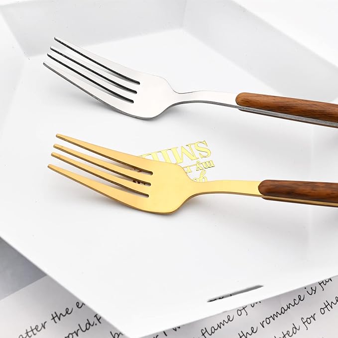 - [ Elegant appearance ] Stainless steel cutlery with vintage wood handles neutralizes the coldness of stainless steel and the heaviness of wood,Enhance the beauty of dining, suitable for various occasions.