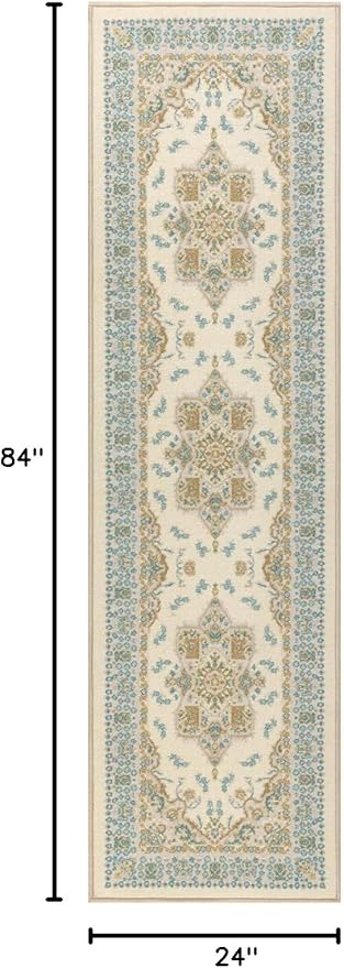 Antep Rugs Alfombras Oriental Traditional 2x7 Non-Skid (Non-Slip) Low Profile Pile Rubber Backing Indoor Runner Rugs (Blue Beige, 2' x 7')