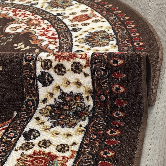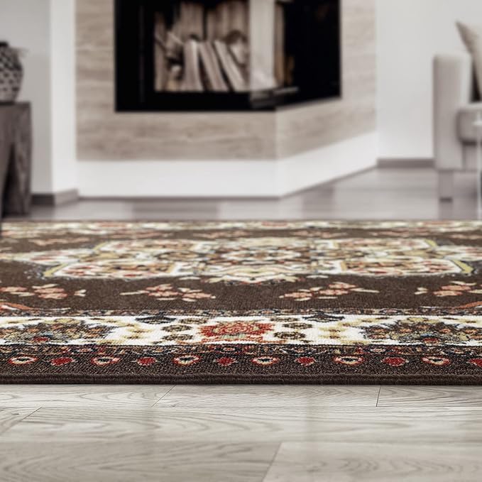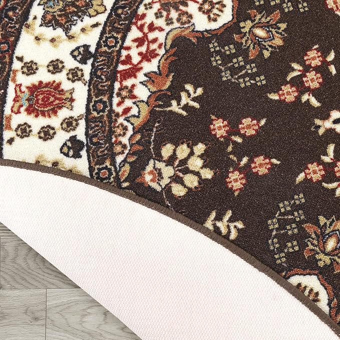 Antep Rugs Alfombras Oriental Traditional 5x7 Non-Skid (Non-Slip) Low Profile Pile Rubber Backing Indoor Area Rugs (Brown, 5' x 7' Oval)