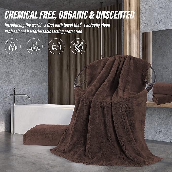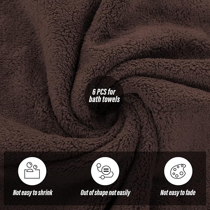 MOONQUEEN 6 Pack Premium Bath Towel Set - Quick Drying - Microfiber Coral Velvet Highly Absorbent Towels - Multipurpose Use as Bath Fitness, Bathroom, Shower, Sports, Yoga Towel (Wood Brown)