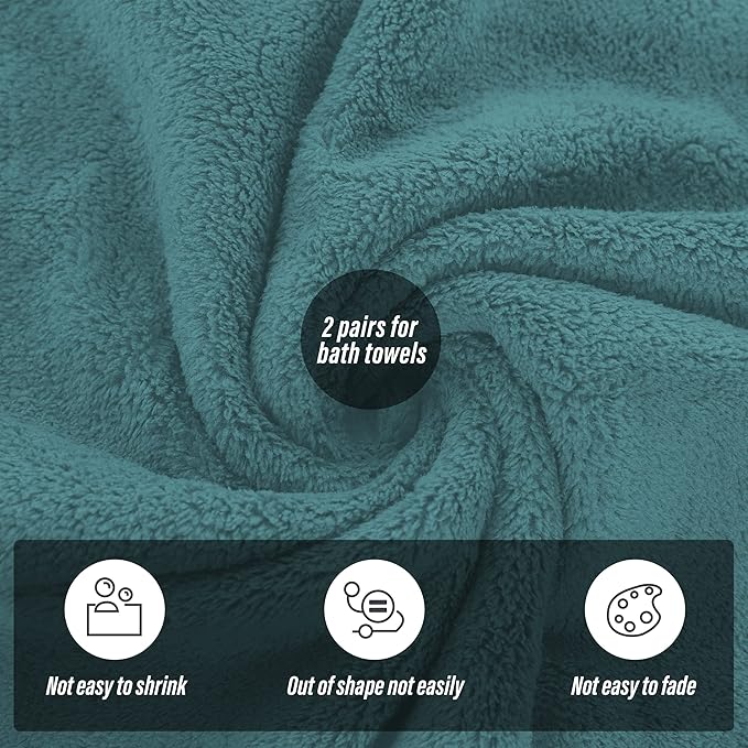 MOONQUEEN 2 Pack Premium Bath Towel Set - Quick Drying - Microfiber Coral Velvet Highly Absorbent Towels - Multipurpose Use as Bath Fitness, Bathroom, Shower, Sports, Yoga Towel (Teal)