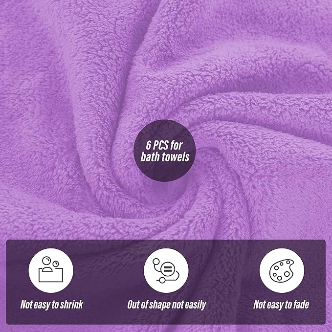 MOONQUEEN 6 Pack Premium Bath Towel Set - Quick Drying - Microfiber Coral Velvet Highly Absorbent Towels - Multipurpose Use as Bath Fitness, Bathroom, Shower, Sports, Yoga Towel (Purple)