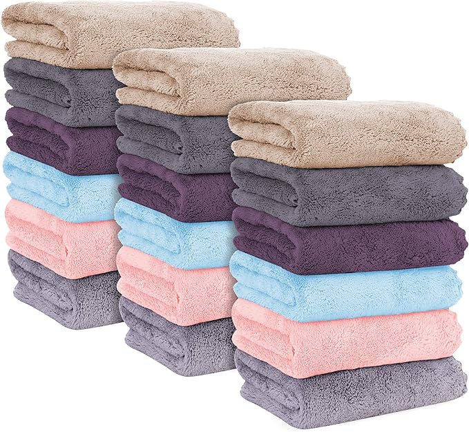 MOONQUEEN 18 Pack Premium Hand Towels - Quick Drying - Microfiber Coral Velvet Highly Absorbent Towels - Multipurpose Use as Hotel, Bathroom, Shower, Spa, Hand Towel 16 x 28 inches (Multicolor)