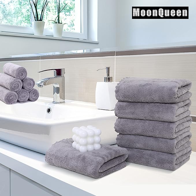 - 【ULTRA ABSORBENT】ABSORBENT and FAST DRYING – MOONQUEEN Microfiber coral velvet hand towels can absorb 7 times their weight in water makes quick drying large surface. This hand towel can be washed and reused hundreds of times.