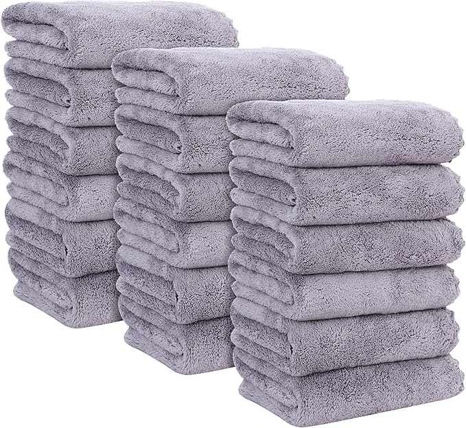 MOONQUEEN 18 Pack Premium Hand Towels - Quick Drying - Microfiber Coral Velvet Highly Absorbent Towels - Multipurpose Use as Hotel, Bathroom, Shower, Spa, Hand Towel 16 x 28 inches (Light Grey)