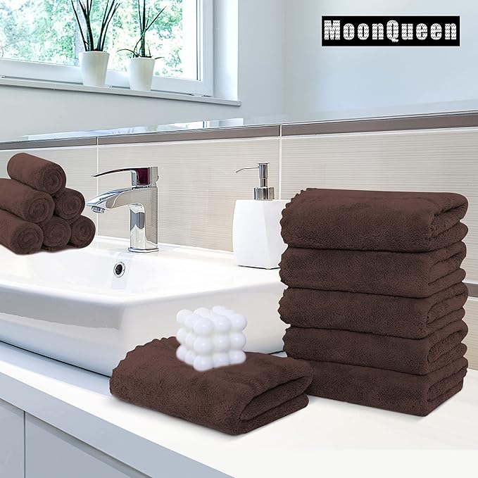 MOONQUEEN 18 Pack Premium Hand Towels - Quick Drying - Microfiber Coral Velvet Highly Absorbent Towels - Multipurpose Use as Hotel, Bathroom, Shower, Spa, Hand Towel 16 x 28 inches (Wood Brown)