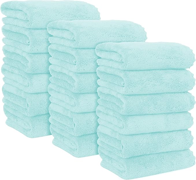MOONQUEEN 18 Pack Premium Hand Towels - Quick Drying - Microfiber Coral Velvet Highly Absorbent Towels - Multipurpose Use as Hotel, Bathroom, Shower, Spa, Hand Towel 16 x 28 inches (Frozen Blue)