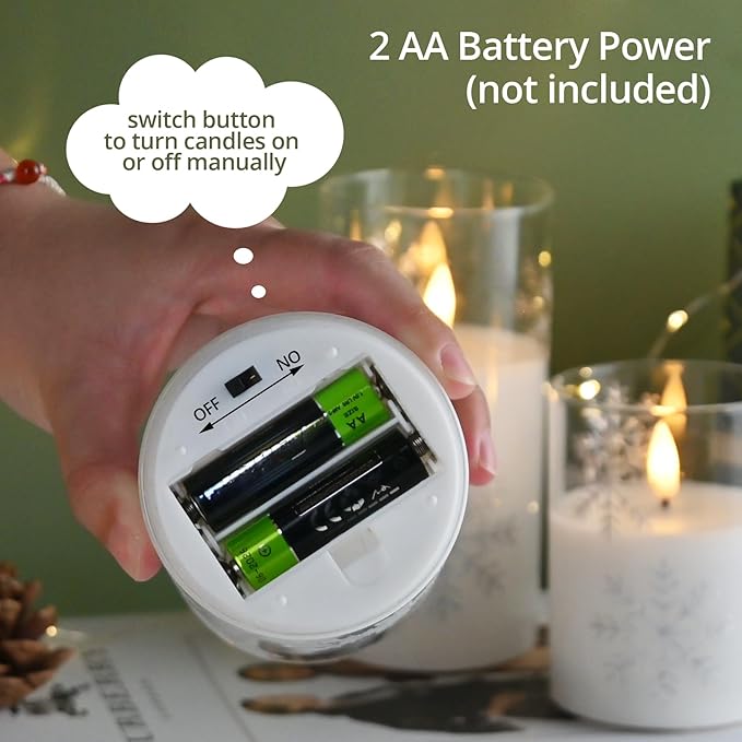 - Realistic Glass LED Candles - These snowflakes glass led candles has real flame effect, real wax in glass containers, flickering softly and giving off a warm white glow, creating a cozy feeling.