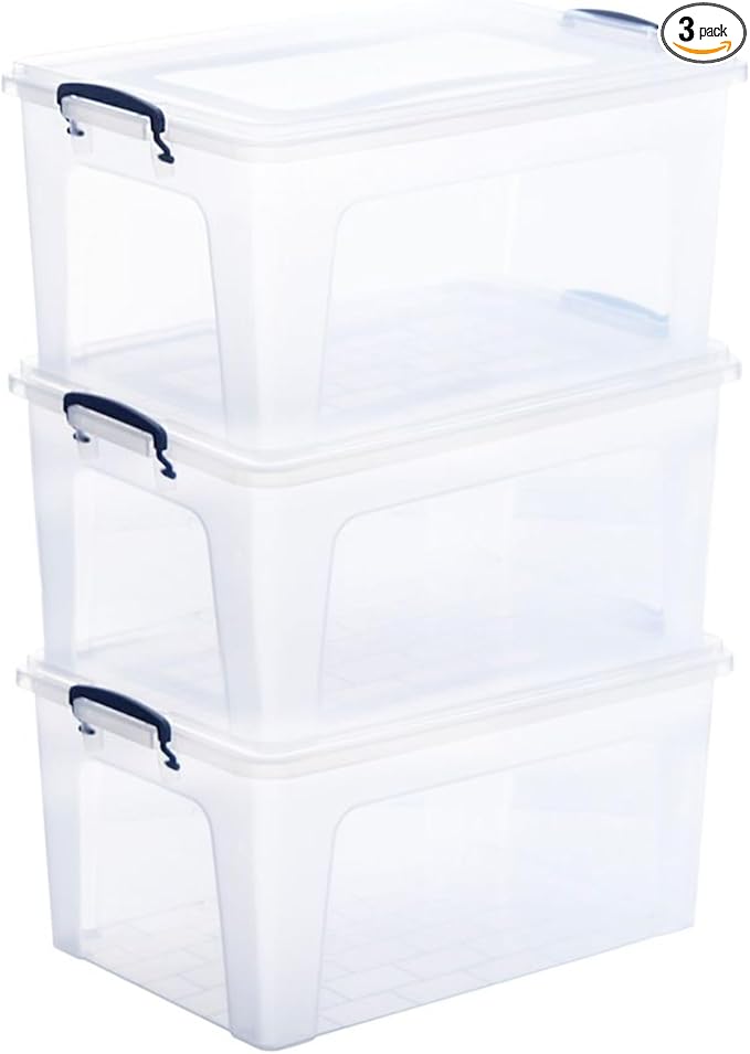 Superio Storage Bins with Lids- Clear Boxes for Organizing, Stackable Plastic Containers- BPA Free, Non-Toxic, Odor Free, Organizer for Home, Office, Dorm, 28.5 Qt, 3 Pack