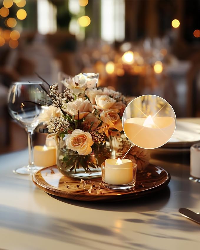 - FLICKERING WARM GLOW: These battery tea lights boast an impressively melting edge design and a realistic warm flicker, enhancing an invitingly cozy and warm ambiance. They are a wonderful addition to your table centerpieces, home, or party décor