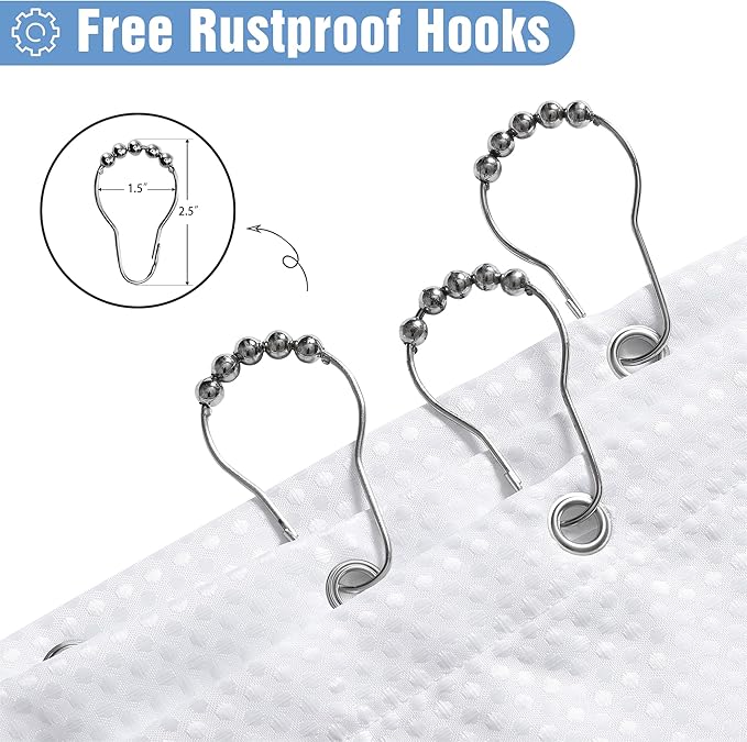 - Packaging and Care Instructions: Includes 1 blue grey ombre shower curtain with reinforced meta eyelets. 12 rustproof hooks with silver ball beads for easy sliding on the shower curtain rod.