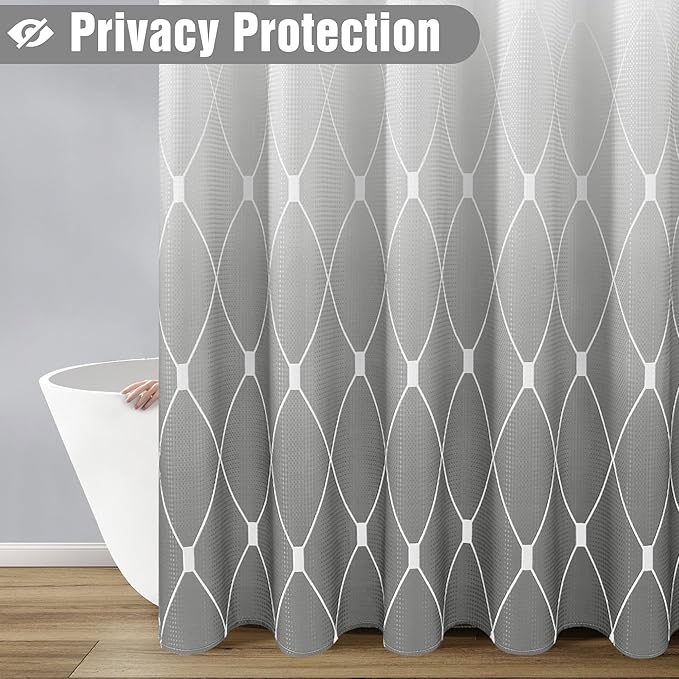 - Privacy Protection: The thick fabric shower curtain effectively blocks the view and protects your privacy for a soothing, comfortable and relaxing bathing experience. The waffle textured fabric will not block light from entering, darkening the bathroom and creating an oppressive feeling.