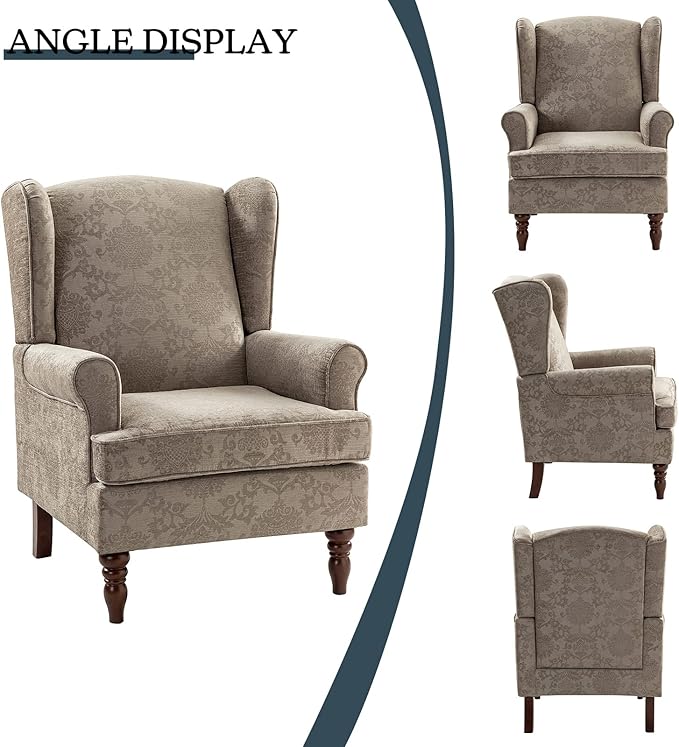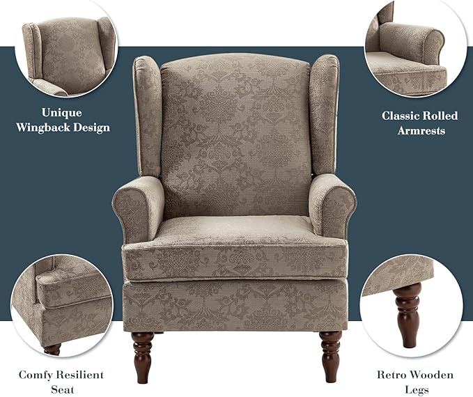 - TRADITIONAL & RETRO STYLE: With retro wooden legs, rolled armrests and beautiful pattern design, this wingback armchair showcases traditional and classic style , which not only is practical for siting and relaxing but also can decorate any space, especially suitable for living room, bedroom, office and leisure areas.