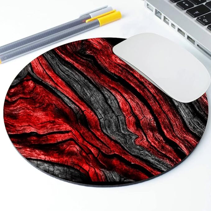 and Red Woodgrain Round Mousepad, Personalized Custom Design Mouse Pads,Cute Waterproof Circular Non-Slip Rubber Base Small Mouse Pad, Mousepad for Laptop Computers