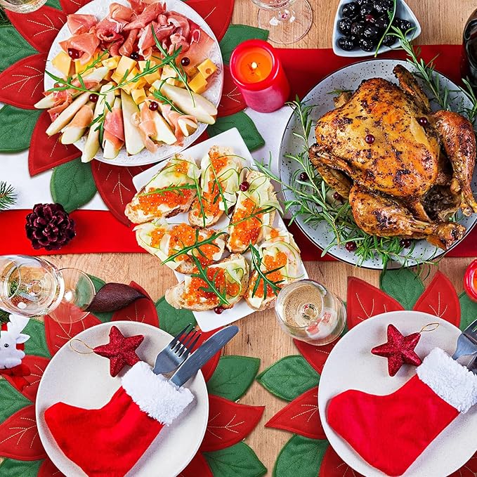 - Poinsettia Pattern: poinsettia placemats are beautiful in style, and red embroidered placemats with poinsettia decals are the elements of Christmas, which can add a festive atmosphere to your activities
